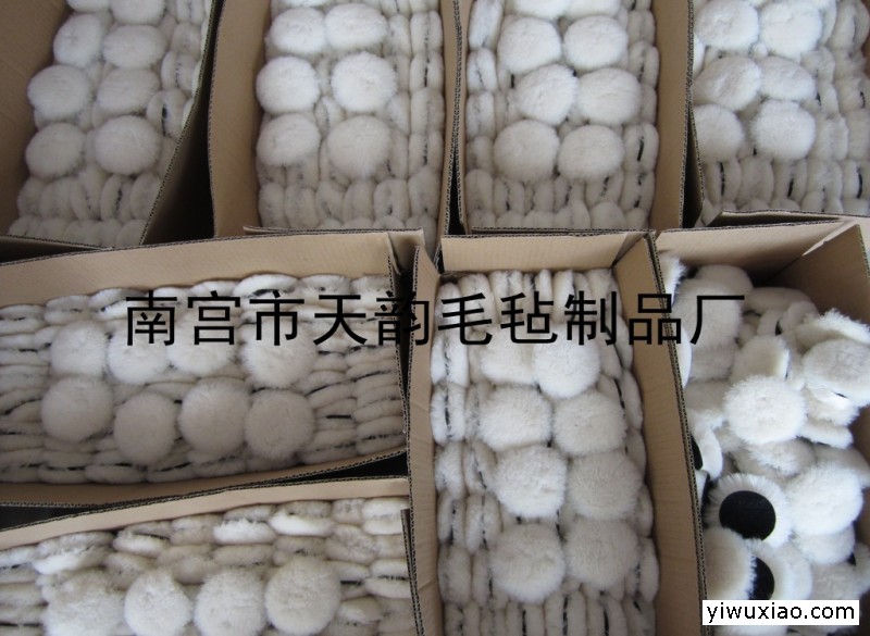 南宫市天韵毛毡制品厂羊毛球产品规格、直径;3寸(75mm)、4寸(100)、5寸(125)、6寸(150)、7寸(180)8寸(200) 羊毛球的用途:主要用于汽车美容、玻璃制品、医疗器械、精密仪器、刀具、金银饰品、贵重金属等表面的抛光打磨。 羊毛球的原料;是以澳大利亚优质羊羔羊皮为原料,一种是背面用尼龙粘扣缝合在一起的,另一种生产方式同3M的。 性能和优点; ⑴、可单独直接抛光使用。 ⑵、与抛光液(膏、粉)一起使用被抛光表面达到更好的抛光效果。 ⑶、能够处理抛光前道工序所留下的痕迹。 ⑷、更换方便。 ⑸、制造工艺先进,选材优良,优质进口奥皮质地柔软富有弹性,纯天然毛皮在抛光过程中,不脱毛,是天然环保材料 ⑹、羊毛球抛光系列与市场上的绝大多数气动、电动打磨抛光机相匹配。 ⑺、可以水洗,重复使用,能降低成本,经济节约。