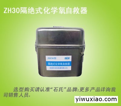 ZH30化学氧自救器,隔绝式自救器,防护自救器材是人体呼吸系统保护装置,不受使用环境中窒息性气体和氧的浓度的限制,使用环境温度0~40℃;主要用于煤矿井下开采作业中,当矿井内遇有灾害事故,造成环境中缺氧或出现高浓度有毒有害气体危及生命安全时矿工可及时佩戴本自救器,实现呼吸系统的保护,并从灾区撤离脱险。ZH30化学氧自救器,隔绝式自救器,防护自救器材还适用于: