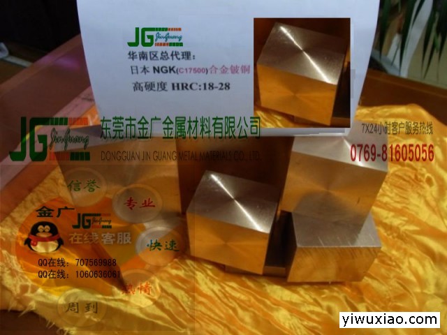 金广公司长期供应优质铍铜板、铍铜棒、铍铜带、铍铜线、铍铜套、铬锆铜板、铬锆铜棒、钨铜板、钨铜棒等铜合金材料。现货规格可根据用户需求平板、分条、裁切等加工服务,特殊规格、硬度、正负公差、表面要求可定制生产,并为用户提供送货上门、物流及17%票,随货附带原厂材质证书及SGS/MSDS/ROHS环保报告。