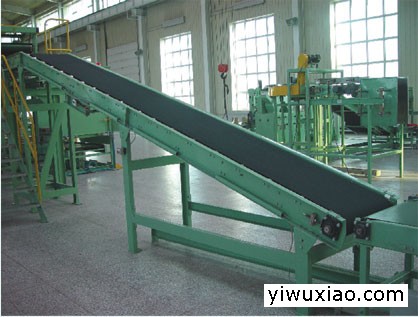 2.皮带输送机性能特点:我公司生产的皮带输送机能够经济而有效地输送各种物料。在工业生产中,皮带输送机可用作生产机械设备之间构成连续生产的纽带,以实现生产环节的连续性和自动化,提高生产率和减轻劳动强度。输送带根据摩擦传动原理而运动,具有输送量大、输送距离长、输送平稳,物料与输送带没有相对运动,噪音较小,结构简单、维修方便、能量消耗少、部件标准化等优点,因而广泛应用于采矿、冶金、化工、铸造、建材等行业的输送和生产流水线以及水电站建设工地和港口等生产部门,用来输送松散物料或成件物品,根据输送工艺要求,可以单台输送,也可多台胶带输送机组成或与其他输送设备组成水平或倾斜的输送系统,以满足不同布置形式的作业线需要。胶带输送机可在环境温度-20℃至+40℃范围内使用,输送物料的温度在50℃以下。 皮带输送机广泛地应用在矿山、冶金、煤炭,粮食,医药,食品等部门。用来输送松散物料或成件物品,根据输送工艺要求,可单台输送,也可多台组成或与其它输送设备组成水平或倾斜的输送系统,以满足不同布置型式的作业线需要;适用于输送堆积密度小于1.67/吨/立方米,易于掏取的粉状、粒状、小块状的低磨琢性物料及袋装物料,如煤、碎石、砂、水泥、化肥、粮食等;被送物料温度小于60℃。其机长及装配形式可根据用户要求确定,传动可用电滚筒,也可用带驱动架的驱动装置