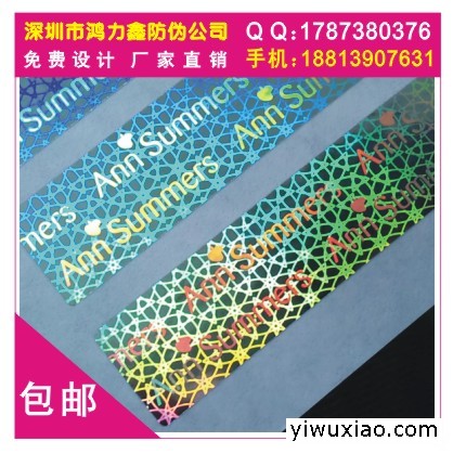 联系电话:18813907631 联系人:钟小姐 商务QQ在线 1787380376主要生产3D光栅片,全息艺术图,全息工艺品,高难度防伪标,洗铝标签,打流水号激光商标,揭开留字防伪贴纸,3D吊牌、透明防伪贴,电码防伪产品,激光防伪商标,镭射防伪商标、全息标签、防伪印刷、防伪标志、防伪标签、OPP透明镭射标贴、激光标、镭射标、易碎标、包装防伪、3D广告画、产品防伪、商标印刷、标签标牌、防伪贴纸、商标防伪、数码防伪、镭射防伪、激光标签、三维立体画、3D镭射卡等.本公司防伪商标产品广泛适用于:服装皮具吊卡吊牌、药业保健品、饮料食品、白酒、葡 萄酒、红酒等酒、电子电器、 烟草、化工、化妆品、生活用品、玩具、礼 品、文化出版制品、汽配、摩配、特色农产品等等.(产品价格只做参考,具体以实样为准)欢迎来电来样咨询洽谈.