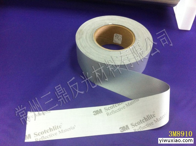 规格及性能:规格:1.27m*50m/整卷,可分切; 0.61cm*1000m/整卷,可分切; 5cm*200m/小卷。类型:反光布 型号:3M8910 品牌:3M颜色:银灰色平均反光强度RA:500材质:65%聚酯纤维,35%棉水洗性能/次:50干洗性能/次:30