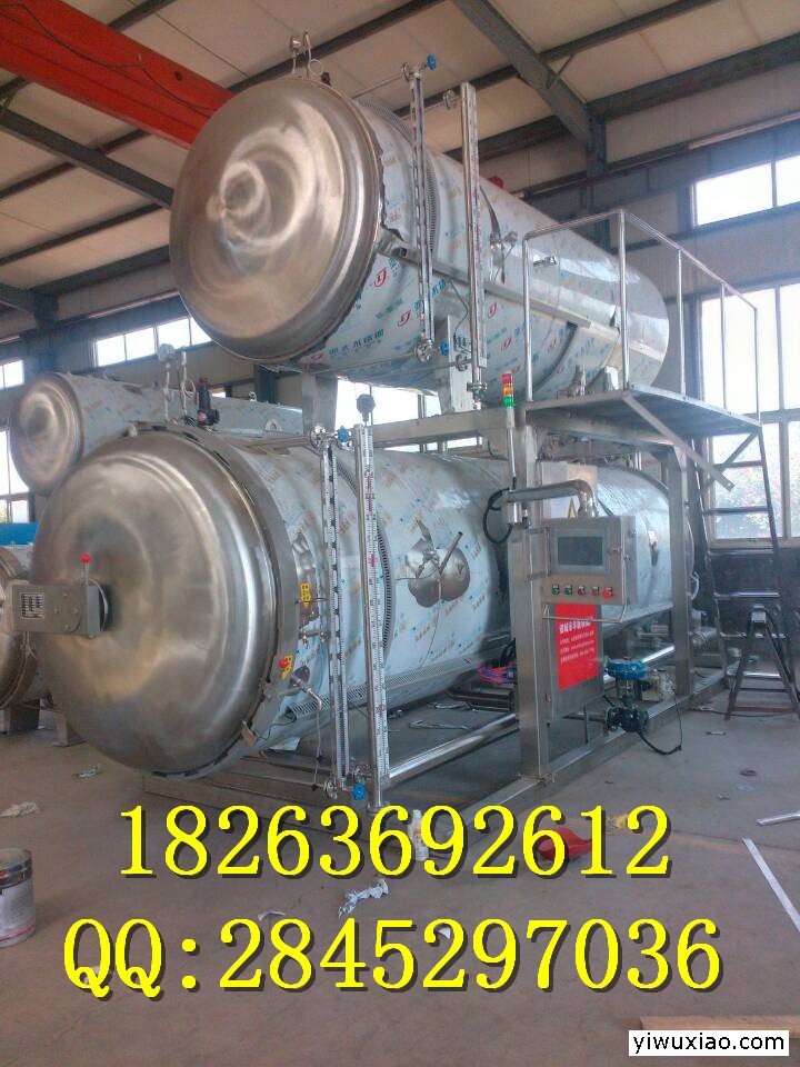 喷淋式杀菌锅是注入少量工艺用水,达到预定位置(不能浸泡产品)通过高效循环泵-过滤器-高效换热器将水注入到喷淋管道,然后通过喷淋嘴将热水喷射出雾化状至食品表面,锅内热分布均匀,无杀菌死角。水通过换热器进行加热和冷却,升温和冷却速度迅速,能高效、全面、稳定的对产品进行杀菌水喷雾或水喷淋式水杀菌锅某些杀菌锅被设计成仅使用少量的水,这些水在杀菌过程中并未完全浸没容器,而是在容器上进行喷雾或喷淋。其中一种类型的杀菌锅是从杀菌锅底部将水抽出,并通过杀菌锅顶部和中部的水喷雾喷嘴将水重新导入锅内对容器进行加热或冷却。水通过蒸汽扩散管进行内部加热,使用空气进行加压。加热介质为混合的水喷雾、蒸汽和空气。冷却水在杀菌循环结束时引入杀菌锅。 有些系统在杀菌和冷却过程中使用过压,以保持容器的完整性和平衡抵消罐内的压力。这样做是必要的,因为有些包装容器对内部压力的忍受力有限。过压杀菌容器的某些实例还有带热封盖的或双金属接缝罐端的半刚性塑料容器、软包袋袋、金属盘、纸板容器和玻璃罐。在250℉时的压力大约是15psig(磅/平方英寸),任何施加于杀菌锅的超过该15psig的压力都称之为过压。提供过压,例如25-35psig的杀菌系统可以在更高的温度下操作。