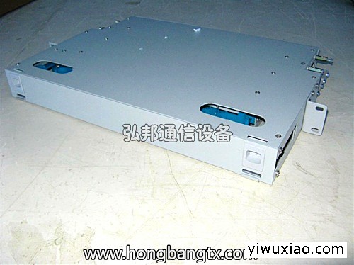 标准单元结构尺寸,19英寸标准安装,既可装入配线架机柜,也可改做壁挂安装。 工艺精良结构件采用加厚镀锌钝化处理冷轧钢板和表面喷涂工艺,光纤分配盘采用掺杂阻燃材料的塑料材质,轻便灵活,又结实耐用。大径盘绕环设计使尾纤和跳纤的曲率半径每处都保持在40mm以上。 既可单独装配成光纤配线架,也可与数字配线单元、音频配线单元同装在一个机柜架内构成综合配线架。具有光缆引入、固定和保护功能,光缆终端与尾纤熔接功能,调线功能和跳纤存储光缆纤芯和尾纤的存储和保护功能等。 配线箱内采用抽屉式结构,操作时可抽出,完毕后放回。在机箱后部有光缆引入孔和固定模块 固定后经光缆盘绕架引入分配盒;光纤分配盘结构为可开启上下层结构:开启上层,将尾纤光纤连接器与下层适配器连接后沿走线架盘绕经出线孔绕至上层,即可合起上层,尾纤头与引入的光缆纤芯熔接后把熔点固定在槽位内粘住,即完成操作,将分配盘插入对应层位即可;分配盒下面为跳纤存储盘由于各功能模块可分开操作,使用灵活方便。