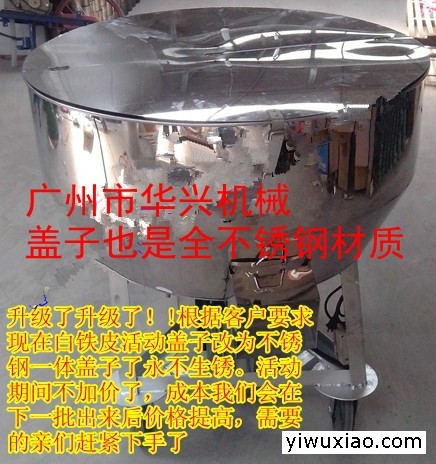 广州市华兴机械生产的搅拌机是一种适合配制搅拌各种饲料(特别是发酵饲料)的移动式小型干湿饲料搅拌机研制成功,效果令人满意。该机型结构紧凑,搅拌桶连机架总高95厘米,搅拌桶上口直径90厘米,下底直径70厘米。采用三轮移动,转向轻巧灵活。长期以来,中小养殖场饲料的搅拌是一个大的问题,大多数都是采用铲子进行简单的搅拌,这种简单的搅拌对使用量较少的饲料中需要添加的各种预混料、药物等很难均匀搅拌,经常造成药物不能全面发挥效果,甚至导致局部过多的药物或添加剂引起动物中毒;加上饲料搅拌非常辛苦,特别是需要发酵的饲料和饲喂湿料,由于重量过大,搅拌吃力,劳动强度大,虽然发酵饲料、农家饲料、自配饲料成本要低于购买的商品全价饲料,由于劳动强度过大的因素而放弃。