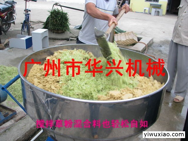 广州市华兴机械生产的搅拌机是一种适合配制搅拌各种饲料(特别是发酵饲料)的移动式小型干湿饲料搅拌机研制成功,效果令人满意。该机型结构紧凑,搅拌桶连机架总高95厘米,搅拌桶上口直径90厘米,下底直径70厘米。采用三轮移动,转向轻巧灵活。长期以来,中小养殖场饲料的搅拌是一个大的问题,大多数都是采用铲子进行简单的搅拌,这种简单的搅拌对使用量较少的饲料中需要添加的各种预混料、药物等很难均匀搅拌,经常造成药物不能全面发挥效果,甚至导致局部过多的药物或添加剂引起动物中毒;加上饲料搅拌非常辛苦,特别是需要发酵的饲料和饲喂湿料,由于重量过大,搅拌吃力,劳动强度大,虽然发酵饲料、农家饲料、自配饲料成本要低于购买的商品全价饲料,由于劳动强度过大的因素而放弃。