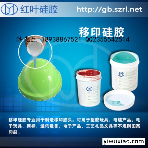 移印硅胶主要用于各类产品图案、花纹的移印。使用较多的有塑胶玩具、电镀产品、电子玩具、商标、通讯设备、电子产品、工艺礼品文具等。使用原理是通过移印胶头,将钢板上的图案转移到塑胶玩具等产品表面。
