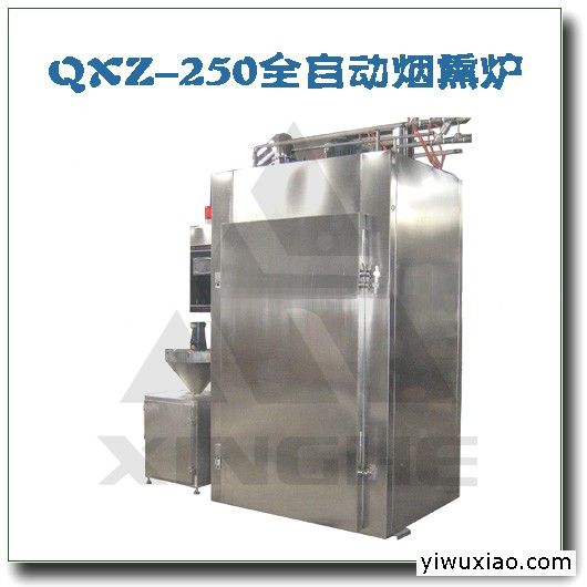 全自动烟熏炉,求购烟熏箱,烤鸭烟熏炉由多个系统组成: 具有热风(干燥或烘烤)蒸煮、烟熏、排风等功能。主要有主机(炉体)发烟装置、主管路、高压蒸汽系统、低压蒸汽系统、电器控制部分等系统组成。 吴环宇 18253618059 QQ:2660561728 全自动烟熏炉(1)主机(炉体)食品的烟熏蒸煮等工序都在主机内进行,其上部设有电动风机,电动机设有高速和低速旋转,使盘管加热器的热量和低压蒸汽在炉内强制循环,控制炉内烟量和温度均匀。炉内设有温度传感器,用于自动检测蒸煮、烘干和烟熏温度。