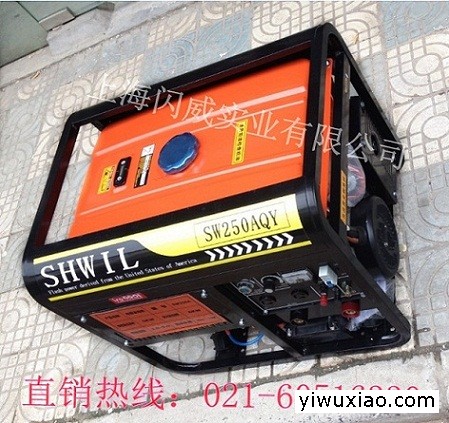 250A汽油发电电焊机最新技术参数 设备品名: 250A汽油发电电焊机机组型号: SW250AQY发电机组主要参数机器尺寸: 长*宽*高(mm) 720*515*545整机重量: 70KG 动力主要参数四冲程汽油动力机器冷却: 风冷缸数:单缸动力配置: SW16HP油箱: 25L工作时间: 满载12小时发电机主要参数 额定输出功率: 5KW最大输出功率: 6KW输出电压: 220V/230V/380/400功率因数: 1(cosΦ)相数: 单相/三相工作电流: 22A/14A频率: 50HZ电压波动: 自动调节油耗: 350g/kw.h电焊机主要资料 电流调节范围: 50-250A空载电压: 65V工作电压: 23-30V负载率: 100%焊条: 2.5-5.0整机机组组成部分: 汽油机 发电机 电焊机 氩弧焊 油箱整机设备随机附件: 配置自带四个轮子和手推把、电启动钥匙三把、三年易损配件、合格证、售后维修卡、电瓶及连接线、安装小工具包、详细使用说明书各壹套、焊接插头两个、发电输出插头三个。 【公司名称】:上海闪威实业有限公司【闪威经理】:康军【联系电话】:固定021-60516330 移动13585557197 QQ:845868686【电子邮箱】:845868686@qq.com【设备网址】:http://www.swfadianji.com 【公司地址】:上海市嘉定区宝钱公路5000弄169号【交易方式】:购销合同、支付宝交易或送货上门 【交易模式】:转账、支付宝、现金、支票、刷卡【关于产品】:含正规17%增值税发票不含运费,全国24小时内发货。【保修服务】:保修一年,终身提供配件(闪威厂家承诺配件24小时内快递邮寄出)【产品名称】:250A汽油发电电焊机【产品型号】:SW250AQY【工作效率】:100%【产品品牌】:SHWIL闪威 源自美国【可选配置】:直流或交流、发电220V380V单三相两用、可插电式、氩弧焊式、逆变式,配置可选厂家支持订购零售。【推荐理由】:SHWIL闪威250A汽油发电电焊机本款机器启动快捷、穿透力强、焊接平滑(快)、运转平稳、震动小、油耗省、体积小、节省材料、结构紧凑、携带、移动方便点火稳定可靠等优点,手推移动式焊机,手、电双模式启动大大提高您的工作效率,户外施工的理想伴侣!【产品性能】:SHWIL闪威250A汽油发电电焊机长时间焊接:2.5MM焊条3.2MM焊条4.0MM焊条,短时间焊接5.0MM焊条5-6小时左右,闪威SW250AQY发电电焊机发出额定功率输出:(50ZH)5KW,后备功率输出:(50HZ)6KW,调节电流范围50A-250A。本款机器为便携式手/电双启动手推移动式氩弧焊发电电焊一体机。【主要使用】:SHWIL闪威250A汽油发电焊机主要建筑工地、公路维护建设、居家使用、超市、外出旅行、野外露营、养殖行业、建筑队、建筑工程、户外施工、园林建设、生产车间、轮船、油田、广告车、汽车、房车、畜牧业、油田开发维护、管道、电建、铁路工程建设、野外电焊施工、抢修应急工程等各种行业使用!以同时进行边焊接,还可发电带动照明、电动小工具等。【产品售后】这您放心!机器在做成成品后有试机人员和检验人试机检验一遍!入库时试机人员和检验人在试机检验一遍!出厂之前时试机人员和检验人会在试机检验一遍!售货12个月内如出现质量问题,除客户使用不当造成的质量问题外,客户如能自行维修,厂家将免费寄出所需的配件进行更换,如不能自修可寄回厂家维修,如果特殊情况闪威技术工程师上门维修。【主要供应】shwil闪威汽油和柴油款发电电焊机::400A-300A-250A-220A-190A可以焊接碱性不锈钢焊条,结构钢焊条、碳钢焊条、低合金钢焊条、钼和铬钼耐热钢焊条、低温钢焊条、不锈钢焊条、堆焊焊条、铸铁焊条、镍及镍合金焊条、铜及铜合金焊条、铝及铝合金焊条及特殊用途焊条等等,使用方便,顶尖的技术可以使十五年左右的寿命,钢板最厚可以焊穿40MM钢板,可以焊接 8mm-7mm-6mm-5mm-4mm-3mm-2mm焊条,想了解更多产品信息欢迎来电咨询恰谈!