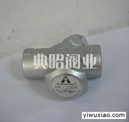 美国阿姆斯壮CD-33S圆盘型疏水阀,Armstrong热动力疏水阀是一种以速度原理工作的时间延迟装置。它只有一个活动部件,就是圆盘。由于非常轻巧紧凑,因此这种疏水阀能够满足在场地狭小场 所工作的要求。圆盘阀除了结构简单、体积小的特点外,还有其它许多优点,比如:耐水击,开阀时可以将凝结水全部放出,以及能够在稳定的吹扫过程间歇式工作。受控圆盘疏水阀的工作,取决于圆盘室内压力的变化。只要有冷凝结水流动,阿姆斯壮CD型疏水阀就会开启。当蒸汽或闪蒸蒸汽到达进口孔,流速增加,将圆盘压 向阀座。控制室压力的增加使圆盘快速关闭。阀盖内加热室及圆盘上机加工出来的环形浅槽控制压力的降低。一旦系统达到一定温度,泄放槽将控制疏水阀的排放频率