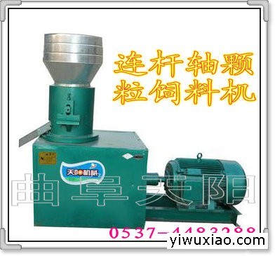 家用小型饲料颗粒机http://www.sdtianyang.com/showcp.asp?id=54专为个体饲养户设计的家用照明电型干进干出的饲料加工机械,噪音低,优质合金钢加工的辊、模耐磨性好,使用寿命长,适于加工猪、牛、羊、鸡、兔、鱼等禽畜水产用饲料。120型饲料颗粒机通过辊模摩擦的高温使粉料糊化,蛋白质变质,制成的颗粒硬度高,内部熟化度充分,可提高禽畜的消化吸收率,避免禽畜挑食,使饲养户得到最大的效益。120型饲料颗粒机采用2.2kw1400转的电动机,模板的直接为120mm,模板的转速为366转/分。膜孔直径2.5、3、4、6mm不等,可根据不同饲料要求选择不同直径的模板,时产量在80-120公斤。120A型(三角带传动)860元,体积800×400×500(mm),38重量(kg),120C型(连杆轴齿轮箱传动)2180元,体积1000×400×750(mm),重量70(kg)。购颗粒饲料机免费提供秸杆生化饲料技术及猪、牛、羊、鸡、兔、鱼等不同生长期所需的各种秸秆全价饲料的配方。汇款购机,款到次日通过大型物流公司发货。天阳机械王杰QQ2536471247 TEL13181307932