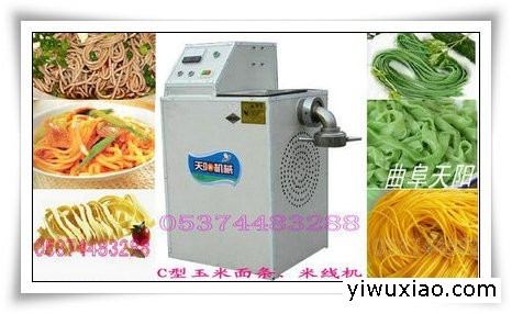 玉米面条机玉米是长寿食品,可以调节人体新陈代谢,提高免疫功能,增强肌体抵抗力。天阳机械公司为满足现代人追求科学膳食,粗粮、杂粮、粗细搭配的饮食要求,研制开发出以玉米为原料的精制玉米面条的生产技术和配套设备—多功能玉米面条机,采用先进的挤压成型技术,着重解决了玉米面条口感绵软、糊汤和煮食易断等问题。加工产品的口感筋道,不糊汤,不断条,产品营养充分,效价高。精制玉米面条产品有各种粗细(直径0.4-1.8毫米)的圆状或扁条状。其外观色泽金黄,口感滑爽细腻,筋道耐煮有咬劲,不糊汤,口感比 江南的米粉柔韧,保留了玉米的原有色泽、香味,符合人们的饮食习惯,粗粮细作,市场前景广阔。天阳玉米面条机还可以荞麦、小米等多种杂粮为原料进行加工生产。适用于个体、乡镇加工厂及城市食品加工厂。