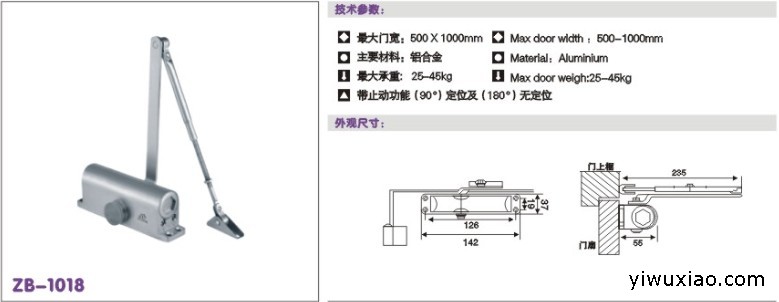 3.双弹簧闭门器闭门速度调节范围180º-15º;
