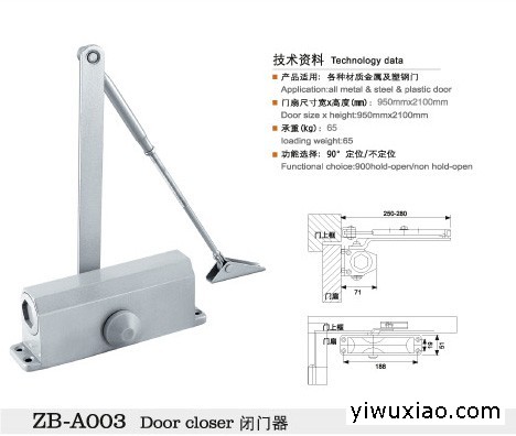 3.双弹簧闭门器闭门速度调节范围180º-15º;