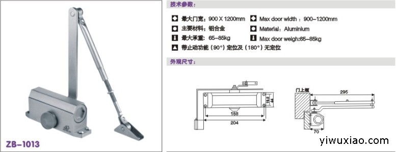 3.双弹簧闭门器闭门速度调节范围180º-15º;