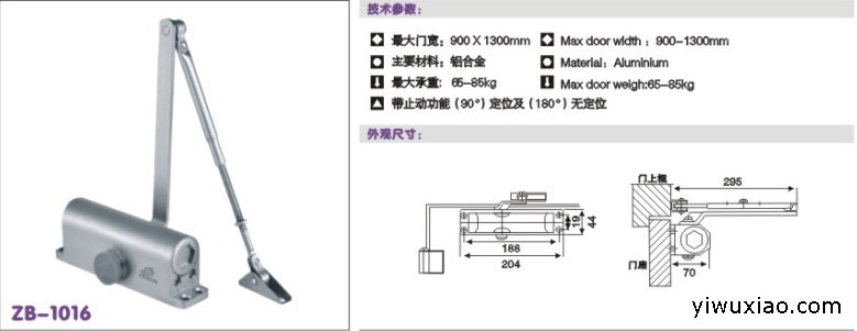 2.双弹簧闭门器最大门重为45-65kg;