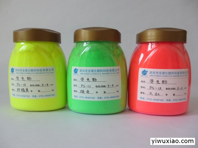 深圳安德伦荧光粉厂家供应的 荧光粉系列:水性荧光粉、油性荧光粉、进口荧光粉,荧光粉颜料广泛用于荧光漆、塑料、硅胶、油墨、涂料、注塑成型、纸张涂料、纺织印花色浆、广告装潢、水性体系、儿童玩具、安全标识、体育运动用品等、注塑成型荧光颜料分耐高低温度从190℃-300℃、油漆、油墨涂料荧光颜料具有较高的着色力及较强的抗溶渗色性可非常强的耐溶剂性能能适用于各种极性的溶剂体系中。