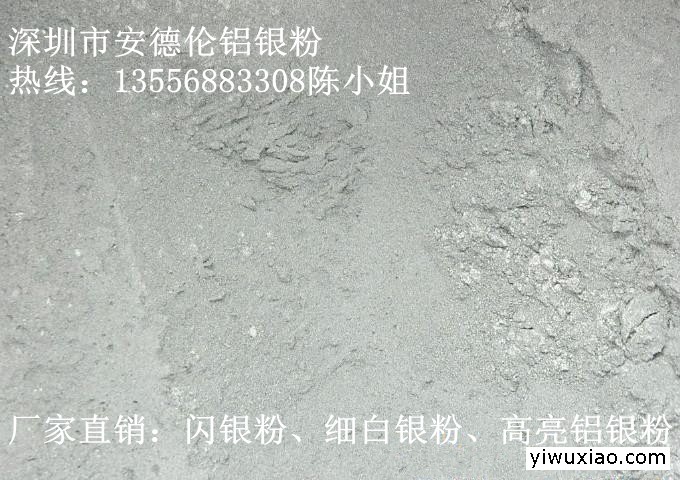 安德伦铝银粉厂家生产的铝银粉系列:铝粉因具有银白色金属光泽,所俗称铝银粉或银粉,它易分散、遮盖力佳、粒径分布集中均匀、表面光滑、细腻、有较强的金属效果,并具有抗热耐酸性能。搅拌摩擦不宜过快,以免破坏金属片。广泛应用于油漆,金属烤漆、车辆涂装、油墨,涂料,装饰、装潢、硅胶,印刷,印花,皮革,玩具,工艺品,圣诞礼品等行业,银粉、铝银粉、细白银粉、细闪银粉、中闪银粉、闪银粉、特闪银粉,目数为(200目-1800目),铝银粉具有遮盖力好、金属感强,铝片形状有雪花状、鱼鳞状与银元状等