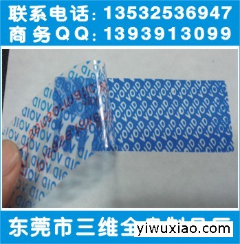 蓝色揭开VOID留字防伪标、超线防伪标签、各类防伪印刷