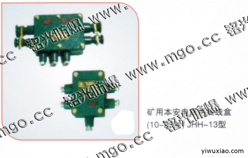 JHH-13型矿用本质安全电路用接线盒属于本质安全型固定式电缆多通接线盒,是根据Q/HX003-2007标准行产的。是本质安全型电路的电缆电线的接线和分线装置,主要用于含有甲烷和煤尘及ⅡB类以下爆炸性混合物的环境中。它具有防尘、防潮、结构紧凑、接线牢靠、电线电缆不易拨脱等优点。