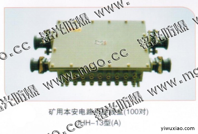 本接线盒电缆进出口管理,覆盖率宽等特点,产品有五排接线端子。接线盒有13不同大小的进出线喇叭口,适合于HUYV型系列矿用通讯电缆以及PUYV系列矿用信号电缆的分接线之用,只能用在有防爆合格证号的本安通讯系统中用于本安电路电缆的延长或缩短或分线。