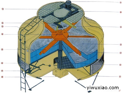 二、按热水和空气的接触方式分有湿式冷却塔、干式冷却塔、干湿式冷却塔。