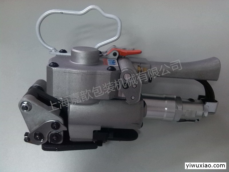 上海气动捆扎机生产厂家 手提式捆扎机嘉歆气动打包机特点:1、使用气源操作,坚固耐用,保养方便2、组合式。气动束紧、咬扣、切带一体化完成。3、双咬扣式4、稳定性佳5、适用行业:钢铁、铝业、电子、汽配、建材等圆形或不规则平面包装。6、操作方式:全气动推扣式。工作原理是一种摩擦熔接型打包机,重叠的热塑性打包带通过摩擦运动产生的热量结合,因此称为“摩擦熔接”压缩空气将气缸的活塞压下,活塞与振动器的上部是和定位销连在一起的,振动器压住打包带的重叠部分。振动器中建有一个椭圆形的孔,该孔与气动马达的偏心轴相连,气动马达高速转动,这使得振动器快速往返运动。打包带的下部被底模的三角齿固定住,上部由振动器的三角齿带动,剧烈的摩擦。这样,打包带的交叠部分过热熔接,当震动定时器到底调定时间,熔接结束。打包带的上部与下部在挤压的同时粘固,静置几秒钟,以确保熔接处已冷却气动打包机故障维修1.锁扣力不足。解决办法:a、零件磨损或变形,需更换;b、外来杂质进入缸体,阻碍活塞在缸体表面运动,应将缸体拆卸,清洗复装使用;c、活塞不能回升,换向阀有泄漏,使进入封扣气缸的实际工作气压偏低,需要换尖塞O型封体。2.收紧力不足。解决办法:a、送进压轮表面网纹磨损,需更换;b、送进压轮与垫轮之间间隙不合理,应调整间隙;c、风动马达内叶片磨损需更换;d、换向阀有泄漏,使进入气马达的实际工作气压偏低,应根据检查情况更换密封件。3.剪断力不足。解决办法:a、刀片磨损;b、检查工作压力是否正常;c、切断钢带的力,来自封锁气缸,参见《故障》现象;d、检查封锁操作。