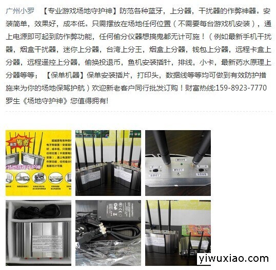 紧急通知:各位场地老板请注意,近期发现打鱼机作弊方式有最新手段,是通过解压包把程序装在手机里面,通过比较频繁地摇手机,然后进行干扰鱼机程序,一定范围内的鱼会很容易死,所以在场地内有事没事摇手机的一定要引起注意。建议场地尽快采取安全防范措施,用来杜绝此新型的作弊手段!经过全国各场地实践【场地守护神】能够起到良好的防范效果,批发价当零售出售,欢迎同行调货选购!