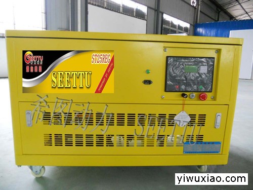 燃气发电机是一种以液化气、天然气等可燃气体为燃烧物,代替汽油、柴油作为发动机动力的新型,高效的新能源发电机。燃气发电机具有输出功率范围广,启动和运行可靠高、发电质量好、重量轻、体积小、维护简单、低频噪声小等优点燃气发电机是一种以液化气、天然气等可燃气体为燃烧物,代替汽油、柴油作为发动机动力的新型,高效的新能源发电机25KW产品型号 ST25RGF功率因素(COS) 1/0.9额定电压(V) 230/400最大功率(KW) 25KW额定频率(HZ) 50/60启动方式 电启动油箱容积(L) 25额定功率 23.5KW相数 单相/三相净重/毛重(KG) 260/270冷却方式 水冷冲程 65.5*78压缩比 9.0:1噪音 (7m) ≤70燃料 90#/93#引擎型号 465Q(稀土电机)包装尺寸(mm) 1120*720*680标准配置 电子调速,数字显示,低噪音,箱柜式20`尺柜 22 台40`尺柜 48 台40尺高柜 72 台