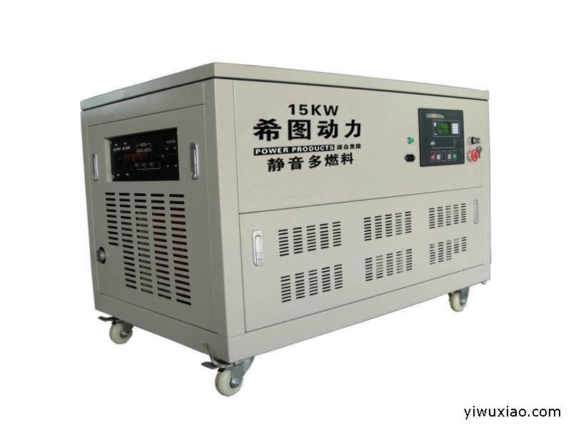 燃气发电机组是适应世界环保要求和市场新环境而开发的新型发电机组。天然气发电机组主要分为两种,一种是联合循环燃气轮机,一种是燃气内燃机。燃气轮机功率比较大,主要用在大、中型电站,燃气内燃机功率比较小,主要用在小型的分布式电站。它是取代燃油、燃煤机组的新型绿色环保动力。充分利用各种天然气或有害气体作为燃料,变废为宝、运行安全方便,成本效益高,排放污染低,并适宜热、电联产等优点,市场前景十分广阔。 我国的天然气资源十分丰富,相对于我国丰富的天然气储量,天然气在我国一次能源消费中所占比例显得太小,未来具有大幅提高的潜力。 在我国,由于受到天然气供应的影响,天然气发电尚处于初始阶段。真正大面积的天然气发电作为分布能源站还要假以时日。现在的小规模天然气发电主要是在油田、气田以及机场、酒店、医院等。可以预计,随着天然气供应的愈加充足、供应范围的不断扩大,近几年天然气发电将会得到一个飞速的发展,希图传承 动力永恒产品型号 ST15RGF 功率因素(COS) 1/0.9额定电压(V) 230/400最大功率(KW) 16.5额定频率(HZ) 50/60启动方式 电启动油箱容积(L) 25额定功率 15KW相数 单相/三相净重/毛重(KG) 260/270冷却方式 水冷冲程 65.5*78压缩比 9.0:1噪音 (7m) ≤75燃料 90#/93#引擎型号 465Q包装尺寸(mm) 1120*720*680标准配置 电子调速,数字显示,低噪音,箱柜式20`尺柜 22 台40`尺柜 48 台40尺高柜 72 台