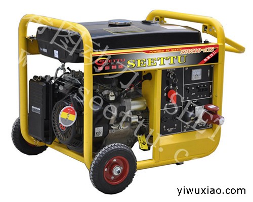 1)过负荷保护:发电机长时间超过额定负荷运行时作用于信号的保护。中小型发电机只装设定子过负荷保护;大型发电机应分别装设定子过负荷和励磁绕组过负荷保护。(2)定子绕组过电流保护:当发电机纵差保护范围外发生短路,而短路元件的保护或断路器拒绝动作,这种保护作为外部短路的后备,也兼作纵差保护的后备保护。(3)定子绕组过电压保护:用于防止突然甩去全部负荷后引起定子绕组过电压,水轮发电机和大型汽轮发电机都装设过电压保护,中小型汽轮发电机通常不装设过电压保护。(4)负序电流保护:电力系统发生不对称短路或者三相负荷不对称(如电气机车、电弧炉等单相负荷的比重太大)时,会使转子端部、护环内表面等电流密度很大的部位过热,造成转子的局部灼伤,因此应装设负序电流保护。(5)失步保护:反应大型发电机与系统振荡过程的失步,希图传承 动力永恒ST6500S 型号相数 三相额定频率(Hz) 50额定电压(V) 400/230额定功率(KW) 5 5.5额定电流(A) 9.1型号 TF5000功率因数(cosφ) 0.8接线方式 Y-形式 四冲程强制风冷型号 188FD排量 (cm3) 389最大输出功率(KW/rpm) 9.5/3600耗油量 540g/kw.h起动系统 电动总长度(mm) 690总宽度(mm) 540总高度(mm) 565毛重/净重 86/83