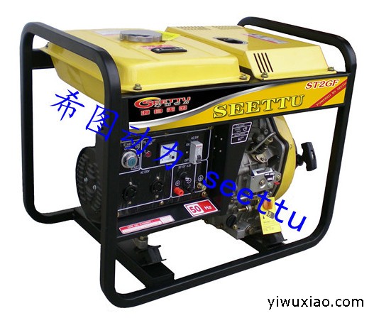 柴油发电机是一种小型发电设备,系指以柴油等为燃料,以柴油机为原动机带动发电机发电的动力机械。整套机组一般由柴油机、发电机、控制箱、燃油箱、起动和控制用蓄电瓶、保护装置、应急柜等部件组成。机组型号 ST2GF 发电机频率(Hz) 50/60最大输出(kw) 2.2额定输出(kw) 2.0额定电压(V) 120,220,230,120/240,220/380功率因素(cosΦ) cosΦ=1直流输出(V) 12V/8.3A 相数 单相e电机形式 自励磁,两极,单相电机启动系统 电启动7米处噪音 80-85燃料箱容量(L) 12.5持续工作小时 17.6/15发动机型号 ST170F动力形式 单缸,直立,四冲程,风冷柴油机缸径X行程(mm) 7055燃油 0#或者-10#清洁柴油润滑油容量(L) 0.75燃烧系统 直喷式标准配置 电压表 yes交流插头 2r交流开关 yes油压警告灯 yes机油报警器 yes选用配置 直流保护器 Optional计时器 Optional大轮子 Optional三相电压 OptionalATS自动切换 Optional电流表 Optional遥控功能 Optional焊接功能 Optional外形尺寸(mm) 660480x530净重(kg) 6320FT 140发电机是将其他形式的能源转换成电能的机械设备,而以柴油机为动力驱动发电机的机械设备我们称之为“柴油发电机”。