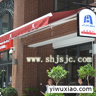 铝合金曲臂式遮阳篷,工作是使用机械装置和曲臂装置系统,在弹簧的作用下,产生伸缩张力,整个曲臂组由臂止动件实现5~70度任意精确平行调整。