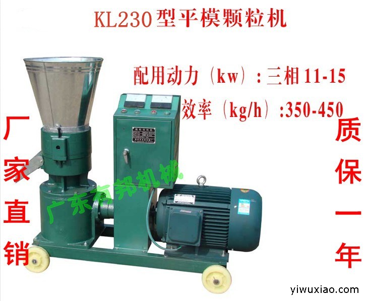 机广东有邦机械厂生产的饲料颗粒机,又名颗粒饲料机,KL系列饲料颗粒机产量100-1200公斤/小时,以圆周运动为原理,模板、压辊采用优质合金钢经特殊处理,主轴及平模在摩擦力作用下,带动压辊自转,物料在压辊与模板之间高温糊化,蛋白质凝固变性,在压辊挤压下从模孔中排出,制成的颗粒经甩料盘送出机外,通过切口可调颗粒长短。饲料颗粒机 在造粒过程中不需要加水,不需烘干,经自然升温达70度左右,可使淀粉糊化,颗粒内部熟化深透,表面光滑,硬度高,可长期储存,是养兔、鱼、鸡、猪、羊、牛专业户及中小型饲料加工厂降低养殖成本,提高经济效益的理想设备,首选机型。注: 颗粒饲料机在加工颗粒饲料自然升温达70度左右,能加入各种添加剂药物,营养损失极小。颗粒表面光洁,硬度适中,内部熟化程度深透.又能杀灭能致病微生物及寄生虫,而保证饲料质量,可用于养兔,鸡,鸭,鹅,鱼,猪,水产品等。电机带动饲料颗粒机:KL120 产量80-100KG /每小时 功率:2.2KW 电压:220VKL150 产量100-160KG/每小时 功率:3-4KW 电压:380VKL200 产量:200-300KG/每小时 功率:7.5KW 电压:380VKL230 产量350-450KG/每小时 功率:15KW 电压:380vKL260 产量500-600KG/每小时 功率:18.5KW 电压:380v厂家直销,欢迎来电订购13533447047 郑晓婷 工 作 QQ:2436869057 公司网址: http://www.gdyoubang.com非人为因素,因产品质量机器零配件需要更换的,公司除免费更换外,并承担配件包装、运输费用。(安全信誉保障:只需预付少量定金,即可物流快运发货,货到再付清余款)地 址:广州市白云区石井潭村(湖天货运站旁) 交通路线: 1.广州火车站坐228路公交车直达(湖天货运站)下车即可地铁路线:2.乘坐五号线地铁到(西场站)走F出口,出来往右走约130米到和平新村公交车站转坐521路公交车直达湖天货运站下车即可 以下其它路牌公交车也可方便到我公司:(湖天货运站)228路 291路 521路 563路 705路 830路 839路