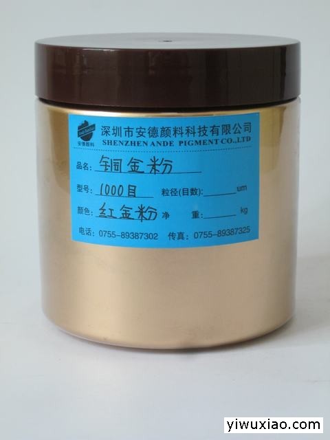 铜金粉特性安德铜金粉是一种浮型片状颜料,由一定比例的铜粉、锌粉和铝合金粉,经熔炼、炼磨、分级而成。 铜金粉其颗粒越粗,金属感越强且越闪烁,但遮盖力较差。反之,颗粒很小,其金属感越弱,色泽也越柔和,其遮盖力就越好。铜金粉色泽纯正亮丽、金属感强烈,根据不同的应用领域和所需达到的金属效果,可通过选择不同颗粒直径和色相来实现。 铜金粉各种规格用途使用说明安德铜金粉颜色可分为青金、红金、青红金、古铜金和紫铜金等。 其规格可分为220目、400目、600目、800目、1000目、1200目、1500目等目数供客户选择。200目:飞金、织物印金,适用快速印刷。特点:光度高,金属感强。