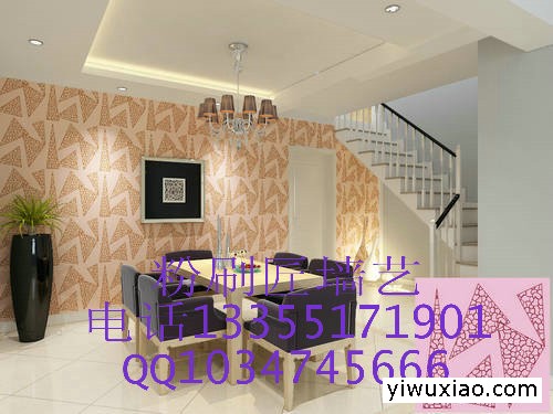 边、起泡、有接缝、寿命短的缺点,同时又具有乳胶漆易施工,寿命长的优点和墙纸图案精美,装饰效果