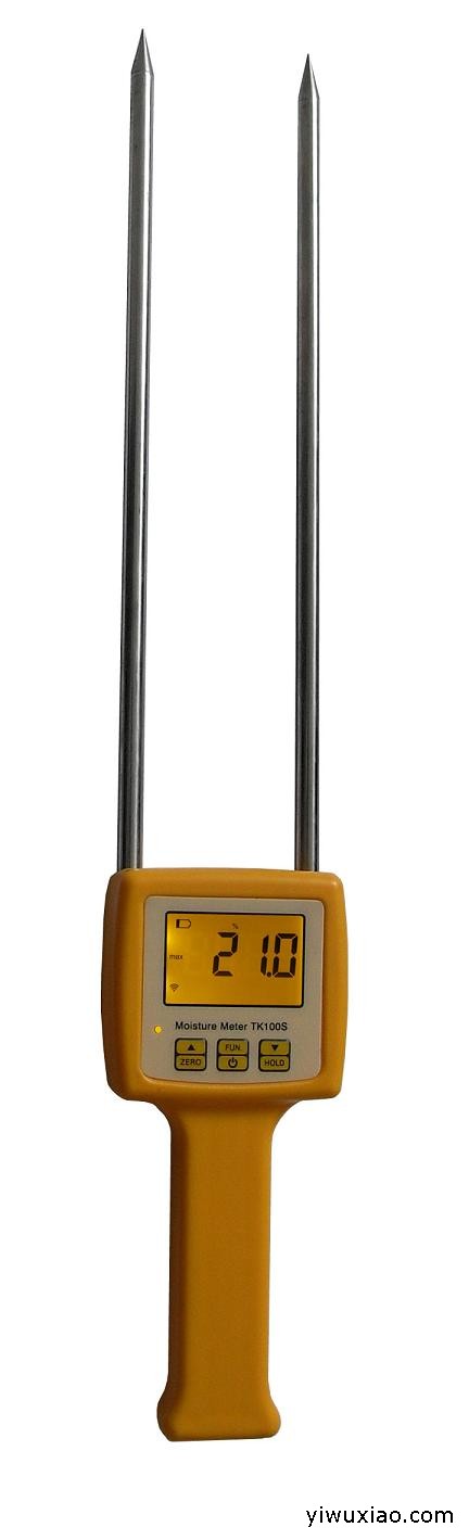 TK100S小麦快速水分仪,玉米快速水分仪,,大豆快速水分仪小麦快速水分仪,玉米快速湿度计,大豆水分仪,TK100S水分测定仪是我公司引进国外先进技术在国内首次推出的高性能、数字化水分测量仪器。仪器采用电导原理,数字显示,传感器与主体合为一体,设有多个档位用来测量粮食,纤维类非导电物质的水分。 该仪器测量水分精度高、显示清晰、测量迅速、性能稳定、指标可靠,而且体积小、重量轻,可随身携带在现场快速检测,使用简单方便。是食品、农业,木业等行业检测其产品水分的理想仪器。技术参数1、显示方式:4位LCD液晶数字显示2、水分测量范围:5-35%3、测量环境:温度:-10℃-60℃ 湿度:<80%(不结露)4、测量原理:电导法,温度补偿5、精确度:±0.5 n%6、分辩力:0.17、响应时间:1秒8、电源:4节7号电池9、体积:460mm×75mm×35mm10、净重:约203克11.测量种类:小麦,玉米,大豆,大米,面粉.