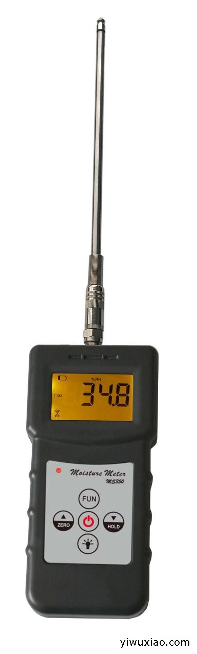 土壤水分测定仪MS350 泥砂水分仪 MS350水分测定仪,主要用来测量化工粉末,煤粉,泥沙等物质水分含量。该仪器采用先进的美国集成电路传感技术和国际先进的电子元器件研制而成,测量精确度高,性能稳定. 一、概述1. 美国先进的电磁波传感技术,穿透能力更强,测量深度更深,通过简单接触瞬时读数,并且不损坏物体表面。2. 宽屏数字背光显示,即使光线不足的环境下也能清晰地显示测量读数。3. 测量速度快,可替代传统烘箱法 ,使水分测定时间缩短,测量值1秒钟读数,大大节省了检测人员的宝贵时间。4. 体积小,重量轻、抗干扰性能强、可随身携带于现现场进行快速检测。5. 仪器设计采用了低功耗大规模集成电路和液晶显示技术, 耗电量低.6. 报警功能,最大值保持。二、技术参数1.显示方式:4位LCD液晶数字显示2.水分测量范围:0-80%3.测量环境:温度:-10℃-50℃ 湿度:35%-85%4.测量原理:高周波原理,温度补偿5.精确度:±(0.5%n+1)6.分辩力:0.17.响应时间:1秒8.电源:4节7号电池9.体积:主机:140mm×60mm×24mm 传感器:6mm×235mm (长度可选)10.净重:约120克