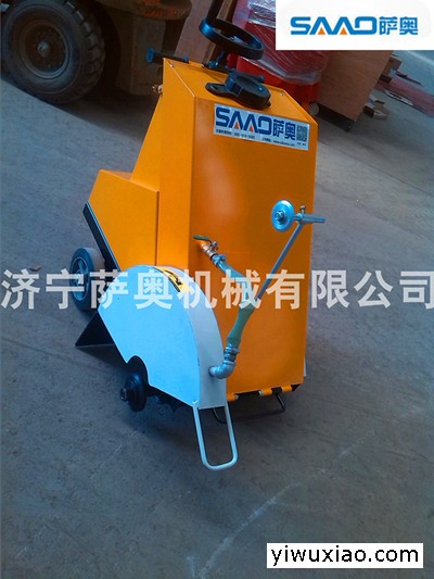 山东萨奥机械马路电动切割机主要组成部分有机身、电动机、扶手架、调节手轮、主轴、行走轮、三角皮带、水箱等。他的切割工作由手推行走式切割进行,其机头主轴上安装金刚石锯片,由电动机通过三角皮带传动,其切割深度由手推架前端的手轮进行控制