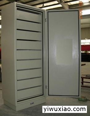 规格:(H)1800*(W)700*(D)500 mm 容积:320L 重量:140KG 配置:9个大抽屉(抽屉尺寸:150*524*355mm)【产品特性】 *抗震结构 *暗藏式门铰链设计 *顶级防磁处理 *人性化设计,美观实用 *双重防潮保障 *防潮防静电【存储对象】 重要的磁介质档案资料如:磁盘、磁带、缩微片、胶卷、录音带、录像带及CD/VCD,U盘,可移动磁盘等,抵御来自外界的磁场、湿气和灰尘的入侵,可真正有效防止资料褪磁、霉变、锈蚀和质变。【注意事项】 ⑴防磁柜具有良好的防震功能,但不适用于有强震源的场所(如空压站、柴油机房)附近。 ⑵防磁柜内置吸湿剂,且密封性能良好,当环境湿度较高时库房内还应配备去湿装置。⑶开启防磁柜存取资料后应及时关闭柜门,保持防磁柜时刻处于密封状态。