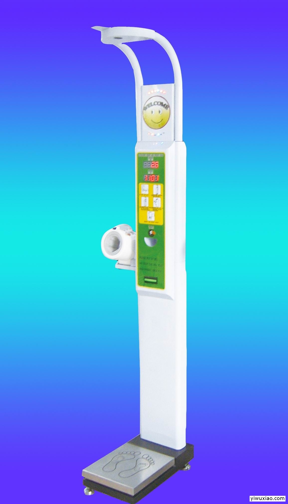 HW-600B HEIGHT AND WEIGHT SCALE                                                 This scale is designed intelligently and adopts American advanced ultrasonic measuring technology .It can measure people’s height and weight automatically after putting a proper coin.The results can be printed,spoken and displayed by high brightness LED screen. This machine has been extensively approved by shopping mall, supermarket,school,pharmacy, hospital, gymnasium and scouring bath center.No matter wherver placed,it attracts people’s eyes and at the same time, it brings you much profit !Main features: