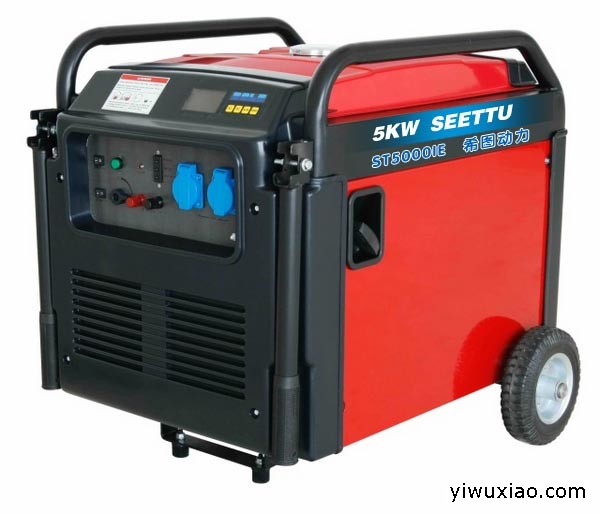 Model ST5000IERated frequency(Hz)50 60 Rated output Voltage(V)230 120Rated output power(kw)5.0Max output power(kw)5.5Short circuit protection time(us)4Phase numberSingle phaseDC output 12V/8.3A Fuel tank capacity(L)20run time per tankful(H)6Noise level(dBA/7m) 60~65Dimension(L×W×H)(mm) 850×600×750Net/Gross weight(kg) 80/85Engine model ST290F Engine type OHV250,single cylinder, air-cooled, 4-strokeDisplacement (ml) 291 Bore*Stroke(mm×mm) 80×58Rated speed(r/min) 3600Rated power(kW) 6.5Fuel type Automotive unleaded gasoline Fuel consumption(g/kW.h) 351 Oil type SAE15W-40 Oil capacity(L) 1.1 型号 ST5000IE额定频率(Hz)50 60 额定电压(V)230 120 额定输出功率(kva)5.0 最大输出功率(kva)5.5 短路保护时间(us)4 相数 单相直流输出 12V/8.3A 油箱容积(L)20 连续工作时间(H)6 噪音水平(dBA/7m) 60~65 尺寸(L×W×H)(mm) 850×600×750 净重/毛重(kg) 80/85启动方式:电启动 遥控启动动力型号 ST290F 发动机型号 OHV250,单缸,气冷四冲程排气量(ml) 291 缸径x行程(mm×mm) 80×58 额定速度(r/min) 3600 额定功率r(kW) 6.5 汽油型号 无铅汽油 耗油量(g/kW.h) 351 机油型号 SAE15W-40 机油容量(L) 1.1