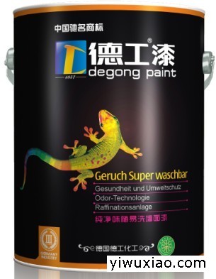 哑光剂来自美国格雷斯公司丁脂、乙脂来自日本三进化工公司硬脂酸锌来自新加坡三原化工公司色精、色浆、抗紫外线吸收剂来自瑞士汽巴化工公司 各类墙漆装修工程漆:广东德工漆 主营建筑涂料、内外墙乳胶漆、木器漆和防水涂料、真石漆、家具漆、氟碳漆、刮沙漆及质感艺术涂料内墙乳胶漆系列:封闭底漆、工程漆、净味、竹炭、负离子系列外墙乳胶漆系列:封闭底漆、透明底漆、晴雨漆、弹性漆、罩光漆(油性、水性)、弹性拉毛漆系列防水涂料:钢性防水、柔性防水地坪漆系列:环氧、聚氨酯、自流平地坪漆多彩涂料:大理石、花岗岩、汉白玉、瓷砖效果、刮沙漆氟碳漆系列:金属漆、实色漆、油性、水性氟碳漆 免费三年质量保修、厂家免费送货中国油漆十大品牌中国涂料十大品牌广东驰名商标中国驰名商标无毒害绿色室内装饰装修材料证书国际防爆化工涂料产品证书美国石油协会API官方授权证书 涂料行业:首家“中国平安保险”加盟公司广东油漆十大品牌