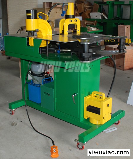 型号:VHB-501多功能母线加工机特 点: 整套设备包括电动液压泵、切排机、冲孔机及弯排机(可加压花机),全部一体化地安装于流动工作车上.利于在车间或现场的流动作业.; 这是一机体组合多项功能的专业设计,完美的考量避免人力浪费,即省工时,符合一贯作业的流程,让从事人员得心应手,产生高效率、高品质的完美作品; 手动控制方向阀清晰调配各工作机的功能.;适合在大型车间及输配电工作的现场施工,及配电柜和开关柜等电器制造厂使用。