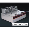 电动双炸锅一、简介 电热炸锅是吸收国内外同类产品的优点设计而成的,具有款式新颖、结构合理、操作方便、升温速度快等特点、是快餐店专用的设备。本机也是作为现做现卖的最理想的食品加工设备。 二、操作方法1、使用时应保持油锅内的油面高度大于1/4油锅深度,但最高油面高度不能大于2/3油锅深度。 2、合上电源开关,红色指示灯亮,此时电源已供至本炉,只要顺时针方向旋转温控器,把所需的温度值对准红点位置,此时绿色指示灯亮,红色指示灯熄,表示电热管工作,锅内油开始升温,当油温升至所需的温度时,温控器能自动切断电源,同时绿色指示灯熄灭,红色指示灯亮,电热管停止工作,锅内油温开始下降,当油温降到设定温度值时,温控器能自动接通电源,此时红色指示灯灭,绿色指示灯亮,电热管又工作,油温上升,如此反复循环,以保证油温在设定的温度范围内恒温。 3、锅盖为保持钠内清洁和保温而成,加盖时应注意盖子上不有水,以免水珠滴入锅中热油飞溅伤人。 4、附有专用的炸篮,供炸制较小的食品,篮上有挂钩及把手。制作时把篮体浸入油中,当炸制大件食品时,可直接入在油锅内进行炸制。 5、需清倒锅内油时,应先待油温降到常温后进行,把炸篮及护板取出,切断电源,再把控制箱取出,另放于干燥清洁地方,使可提出油锅进行清理。 6、油锅内的护板是为保护电热管而设,在炸制食品时,护板必须放在油锅内,炸锅每次用完后应切断电源,确保安全。 7、应使用植物油,严禁使用旧油。 三、清洁与保养 1、在清洁保养时,应切断电源,防止发生意外事故。 2、每天工作完毕后可用不含腐蚀性的清洁剂的湿毛巾,清洁锅体表面及电源引出线外表面,严禁用水直接冲洗电器箱表面,以免破坏电气性能。 四、一般故障现象 故障现象 原因 排除方法 合上开关指示灯不亮 电源开关保险丝熔断 1、换上合适的保险丝2、紧固电源线 红、绿指示灯同时亮1、电热管接线松动2、电热管烧坏1、紧固电热管接线2、更换电热管 绿色指示灯不熄,油温上升不能控制 温控器失灵 更换温控器 指示灯不亮,油温控制正常 指示灯烧坏 更换指示灯