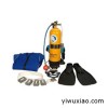 潜水装备 潜水装具 英文名称:diving apparatus;diving's equipment 潜水用品.潜水器材.水下呼吸器,空气自携式开放回路单管咬嘴型潜水装具是轻潜装具,由咬嘴呼吸器,口鼻半面罩,12L空气气瓶,减压阀,湿式潜水服,脚蹼,压铅组成,广泛用于潜水旅游,水产养殖,渔业捕捞,水下施工,水下救援等。东台市安航船舶装配有限公司 救生筏 平时包装存放在玻璃钢存放筒内,安装在船舷专用筏架上,可将筏直接抛入水中,救生筏 既可自动充胀成形,供遇险人员乘坐,如果船舶下沉太快,来不及将筏抛入水中,当船舶沉到水下一定深度时,筏架上的静水压力释放器会自动脱钩,释放出救生筏 ,救生筏 会浮出水面自动充胀成形。